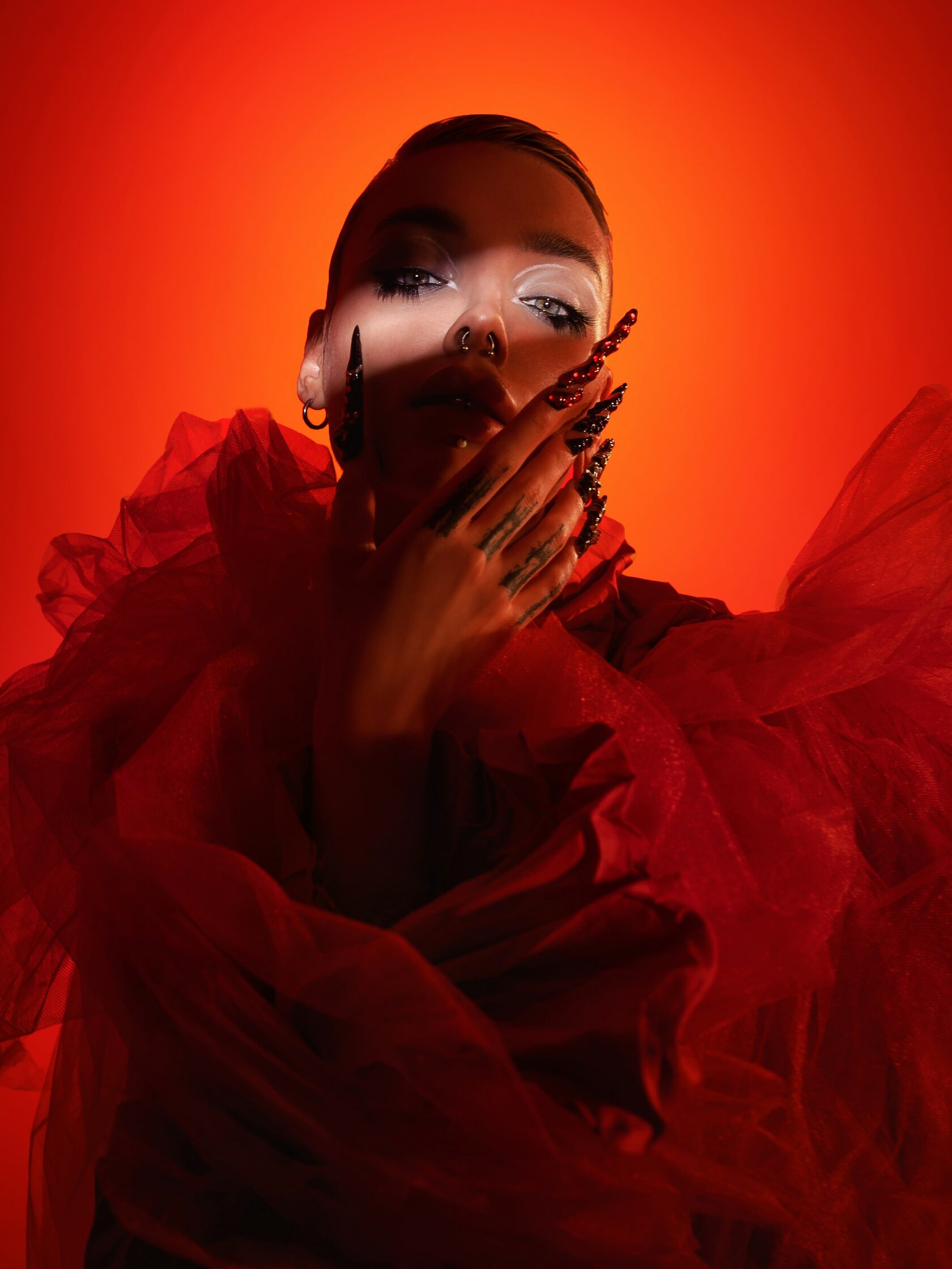 Попробуйте взять самую большую насадку и сделать фотографию, где будет темный фон( учитывая, что вы снимаете на светлом фоне) и темные тени на модели.