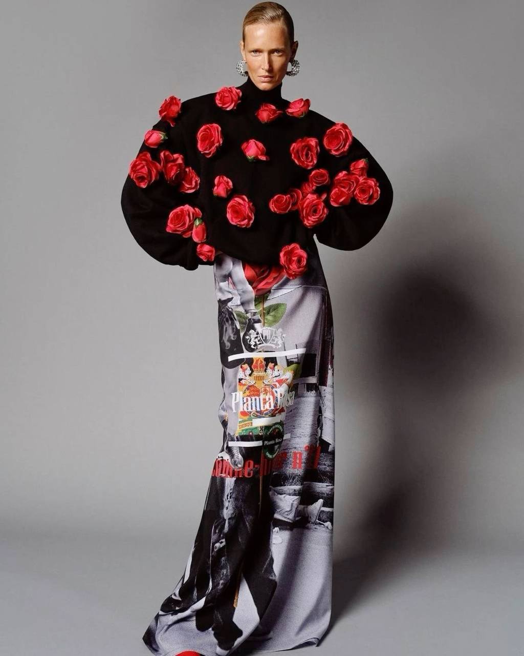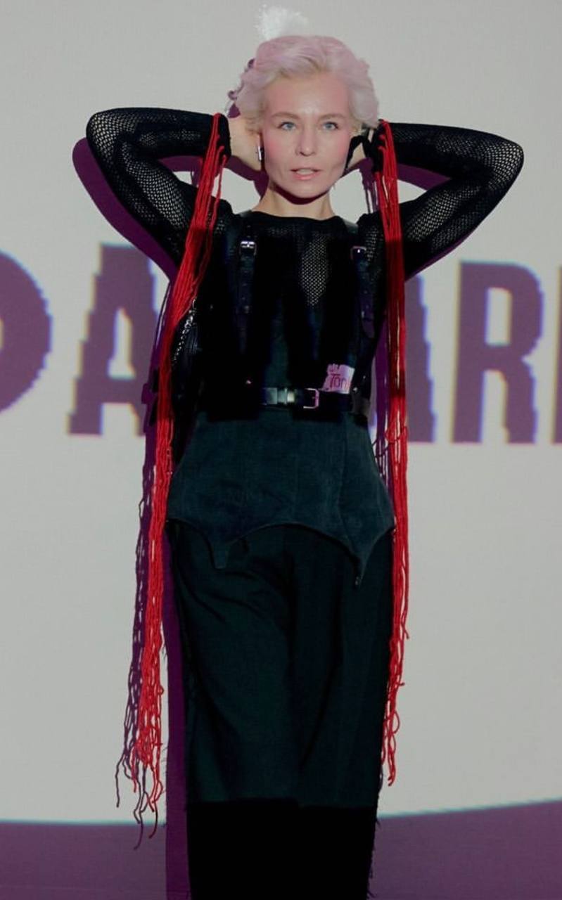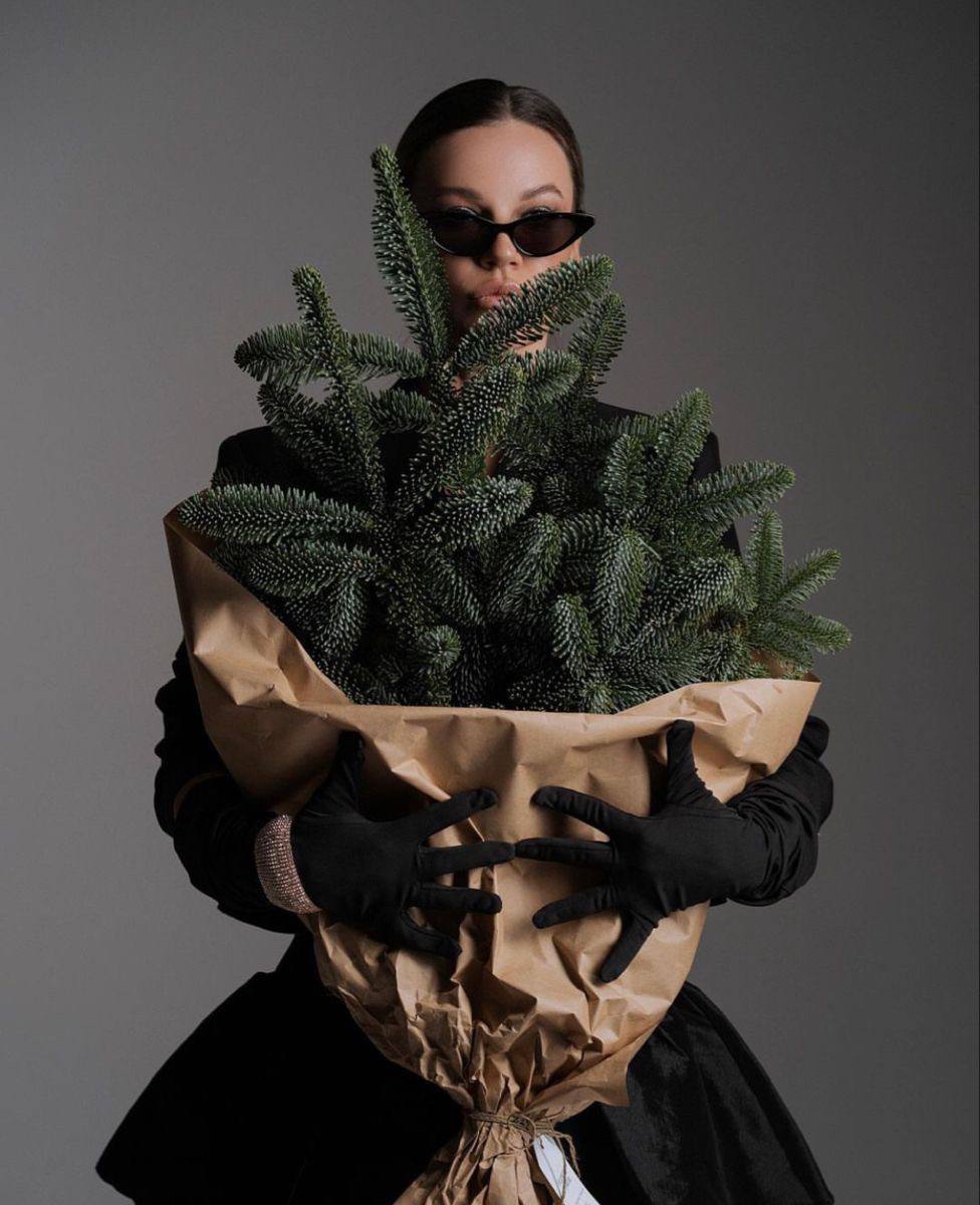 ней черная водолазка и черные брюки